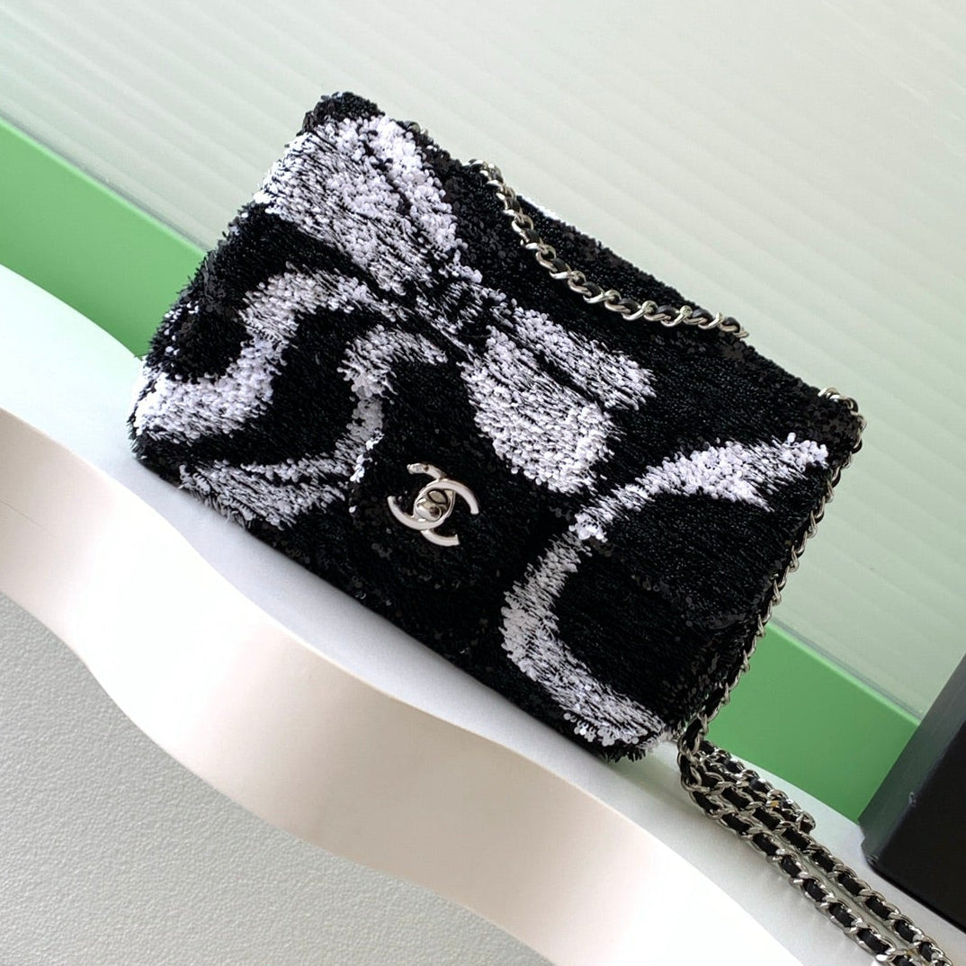 CC 2025 Flap Bag Silver Black Sequin 298202