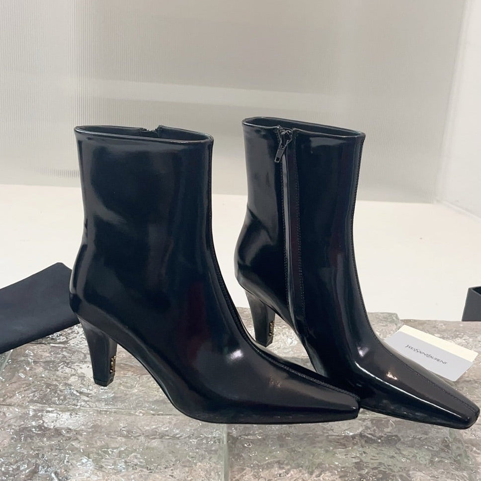 YSL 25 Metal Toe Short Boot Black Gold Patent Leather 520788
