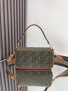 Fend Baguette Green Canvas Bag 27 with FF Embroidery Ghw