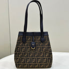 FENDI ORIGAMI MEDIUM 27 BROWN MIX BLACK FF JACQUARD FABRIC BAG