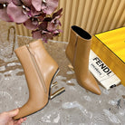 FENDI FIRST 80 MM BOOTS IN CIDER BROWN CALFSKIN WITH GOLD HARDWARE
