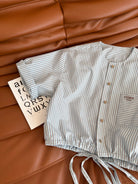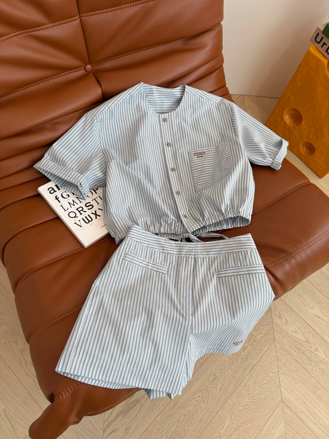 Fendi 25 Letter Logo Embroidered Striped Suit Blue Cotton