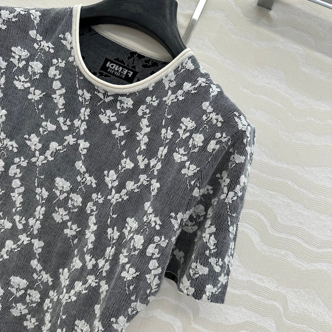 Fendi Knitted Top Dark Gray Cotton Viscose