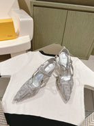 FENDI COLIBRÌ HIGH-HEELED SLINGBACKS 75MM IN LIGHT GREY FABRIC