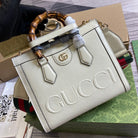 DIANA SMALL TOTE BAG 27 WITH WEB IN WHITE LACQUER CALFSKIN BAMBOO HANDLE