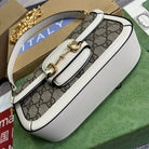 GG HORSEBIT 1955 BAG 24 IN BEIGE CANVAS AND WHITE CALFSKIN