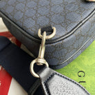 OPHIDIA MINI BAG 18 IN DARK BLUE MONOGRAM CANVAS AND BLACK LAMBSKIN TRIM