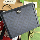 OPHIDIA POUCH 26 IN DARK BLUE MONOGRAM CANVAS AND BLACK LAMBSKIN TRIM
