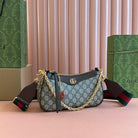 OPHIDIA SMALL SHOULDER BAG 25 IN BEIGE EBONY CANVAS AND DARK BROWN LAMBSKIN GOLD HARDWARE