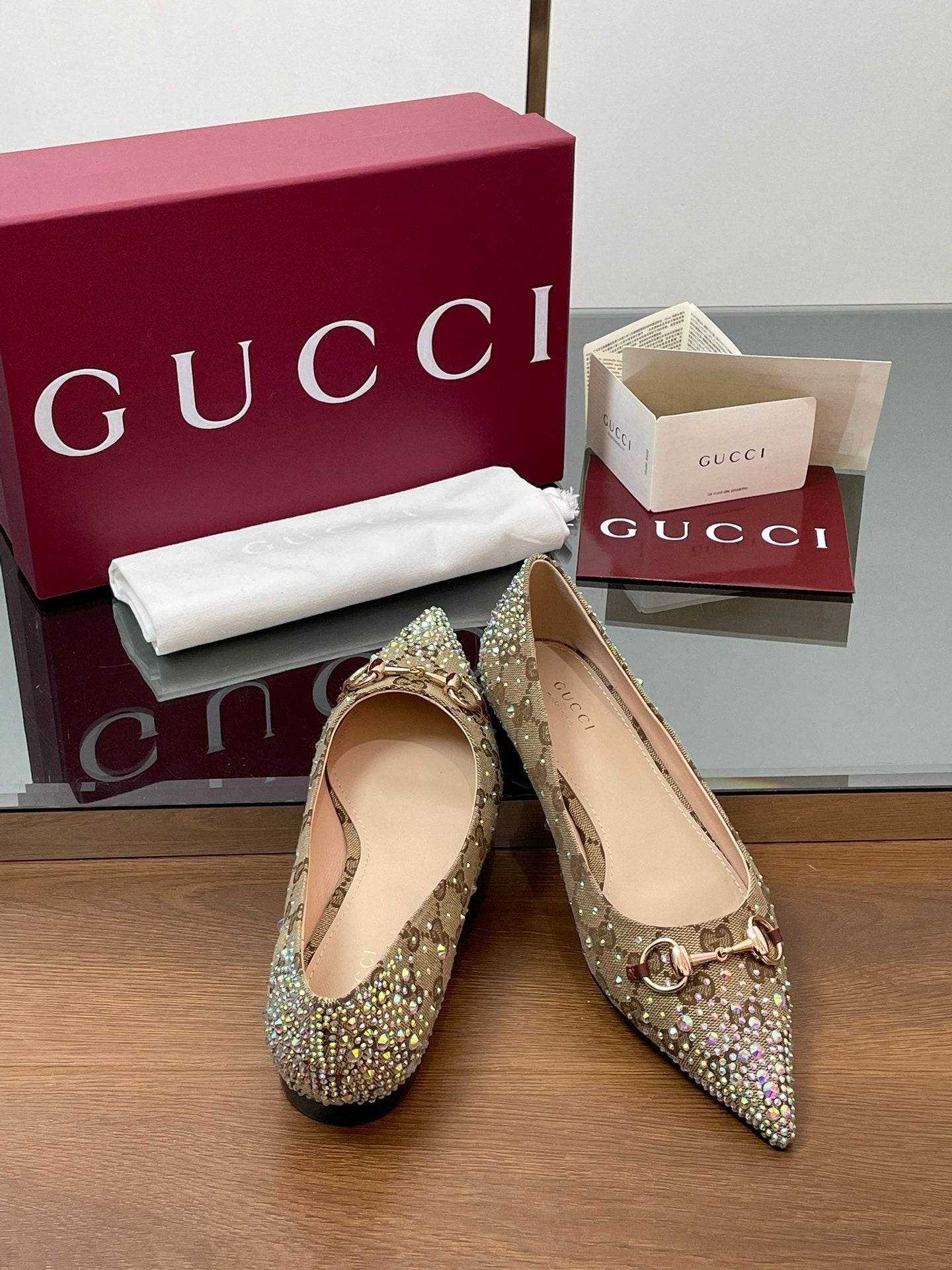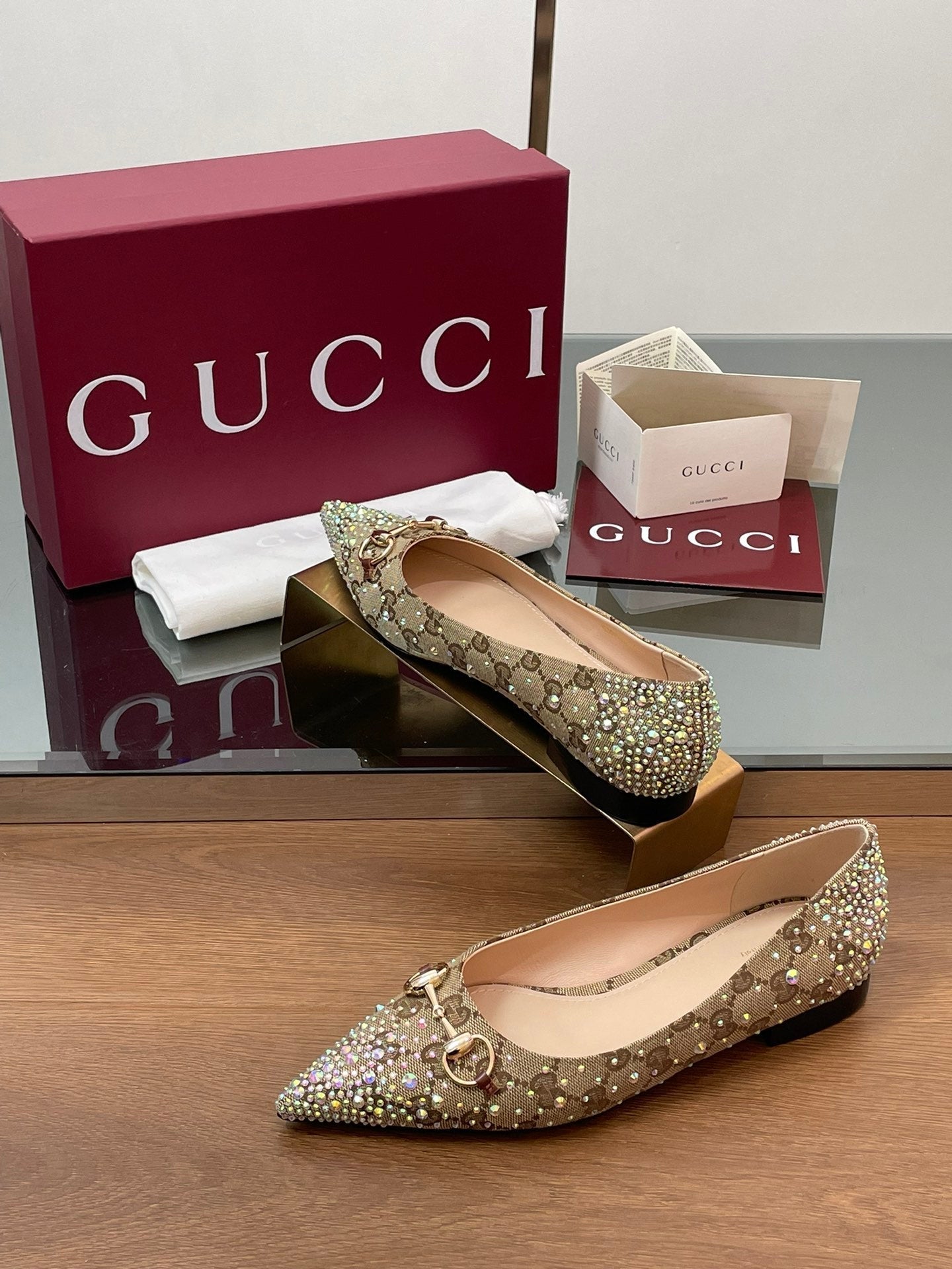 GG Horsebit Ballet Flat Beige Ebony Monogram Canvas Crystal-Embellished
