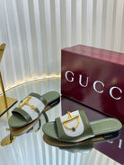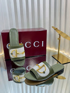 GC 25 Horsebit GG Sandals Dark Green Canvas Sheepskin 294663