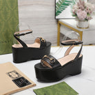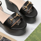 GG Horsebit Wedges Sandals Black