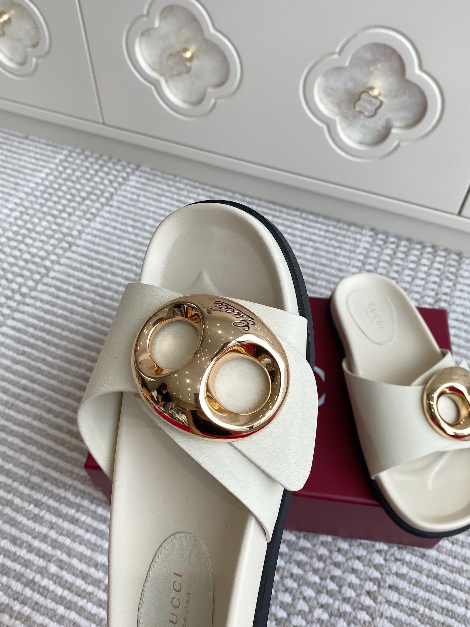 GC Marina Chain Slide Sandal White Cowhide 291038