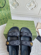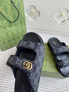 GC sandal with Double G Black Canvas Sheepskin 291017