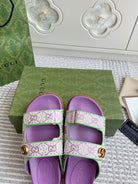 GC sandal with Double G Purple Canvas Sheepskin 291018