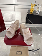GC Wedge With Horsebit Sandal Beige Canvas 292423