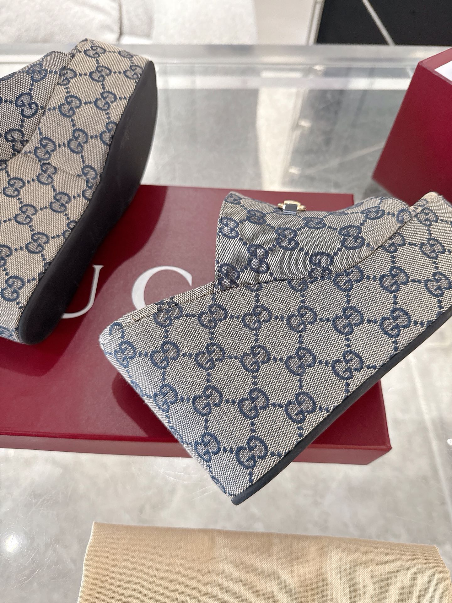 GC Wedge With Horsebit Sandal Gray Blue Canvas 292420