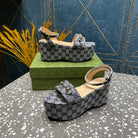 GG HORSEBIT FLATFORM SANDAL LEAD CALFSKIN