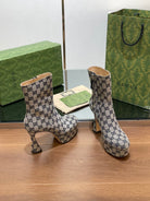GG SHORT BOOTS 11.5 CM IN BLACK MIX BEIGE MONOGRAM JACQUARD FABRIC