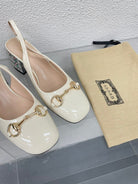 GG WOMEN'S HORSEBIT SLINGBACK IN WHITE CALFSKIN WITH RHINSTONES