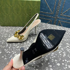 WOMEN'S SLINGBACK 10.5 CM IN WHITE CALFSKIN WITH GOLD HARDWARE