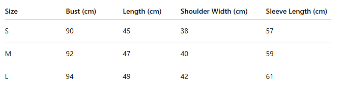 - Size: S, M, L