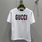Gucci 2025 Print Short Sleeve T-shirt White Green Red Cotton