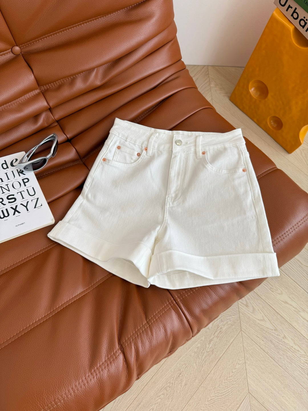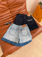 Gucci 25 Logo Embroidered Rolled-hem Denim Shorts Cotton
