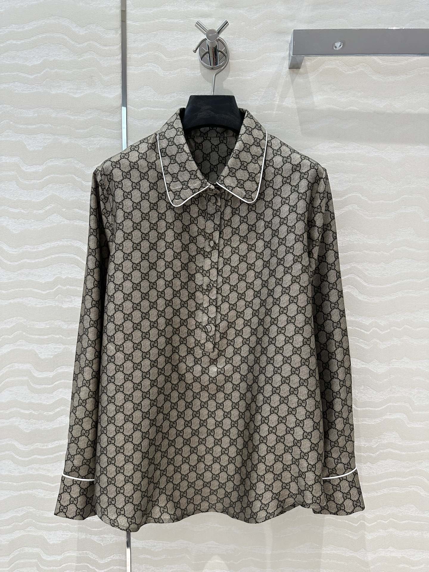 Gucci 25 Monogram Shirt Gray Silk