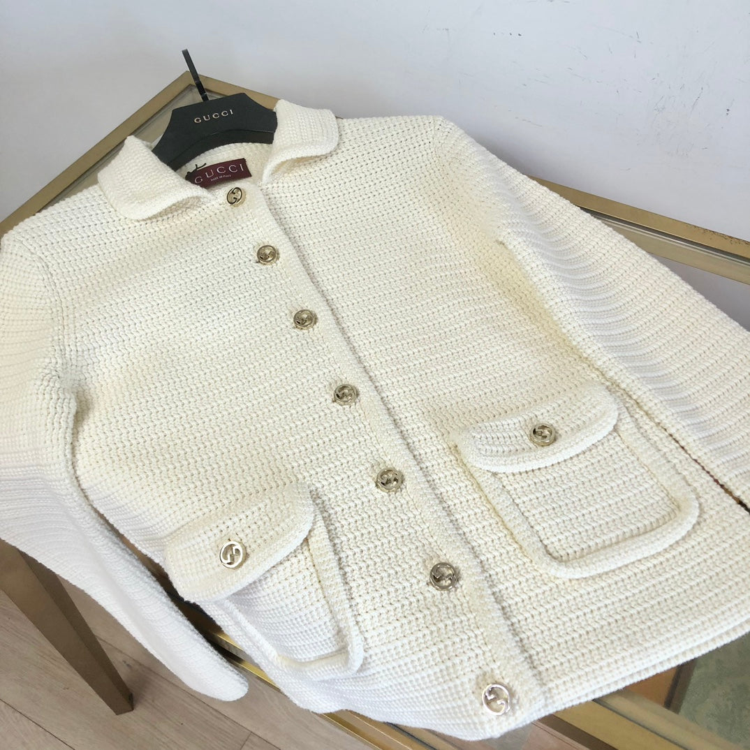 Gucci Rocheted Cardigan Cream Cotton 294121