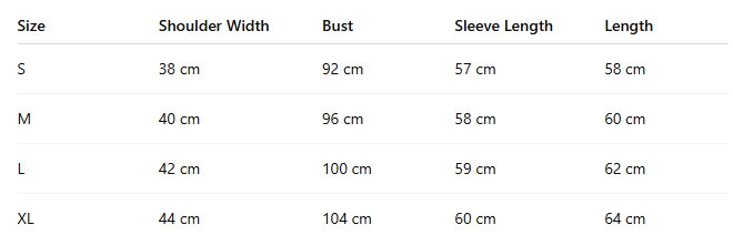 - Size: S, M, L, XL