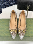 GG Pump 85 Beige Ebony Canvas Crystal-Embellished