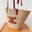 Celine Medium Supple Classic Panier 30cm Brown Calfskin Beige Raffia
