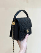 Chanel 24K Handle Flap Bag Black Calfskin Leather