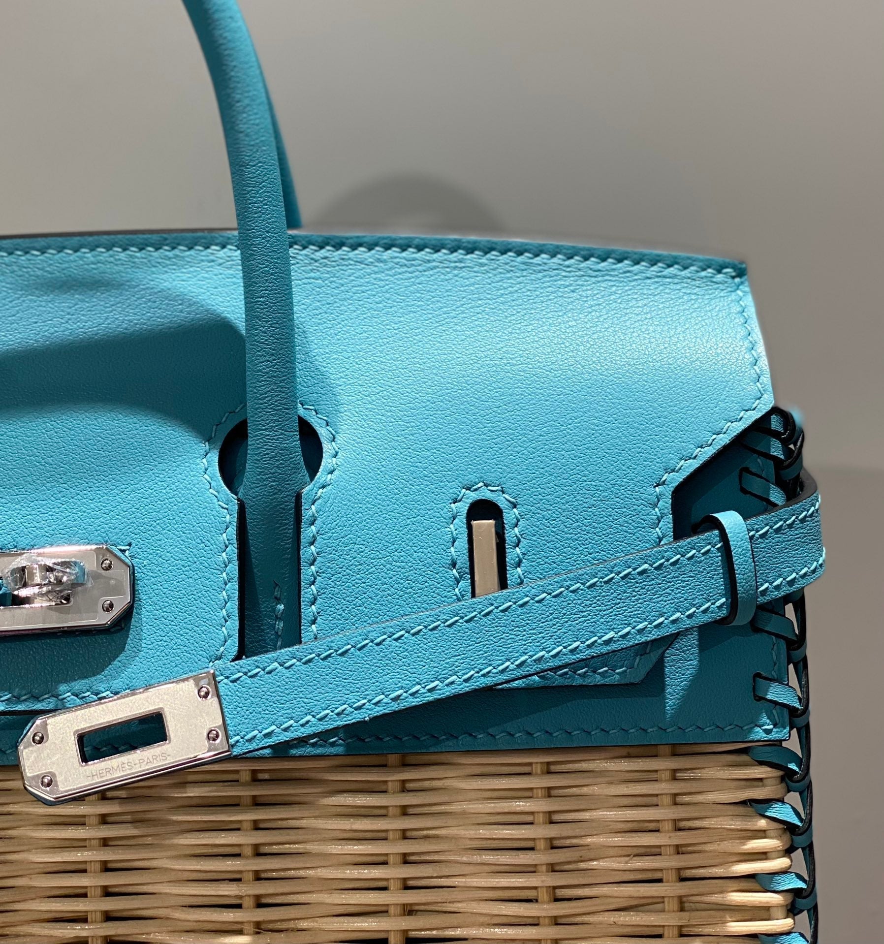 HM BIRKIN 25 CM PICNIC SKY BAMBOO AND RATTAN