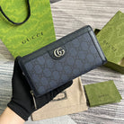 OPHIDIA GG 19 ZIP AROUND WALLET DARK BLUE CANVAS AND BLACK CALFSKIN