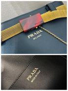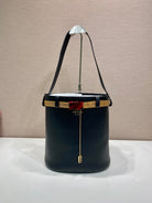 PRA bucket bag iron chain belt black leather 341179