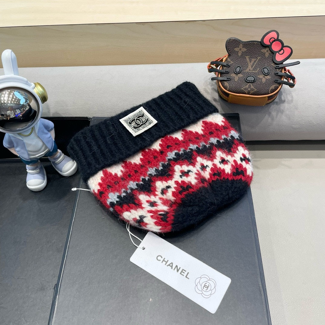 KNIT BEANIE HAT BLACK MIX RED 428243