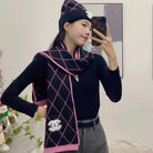 SET HAT AND SCARF IN BLACK MIX BRIGHT PINK WOOL 422596