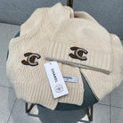SET HAT AND SCARF IN CREAM TAN WOOL 420822