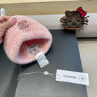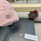STRIPED KNITTED HAT IN LIGHT PINK WOOL 424515