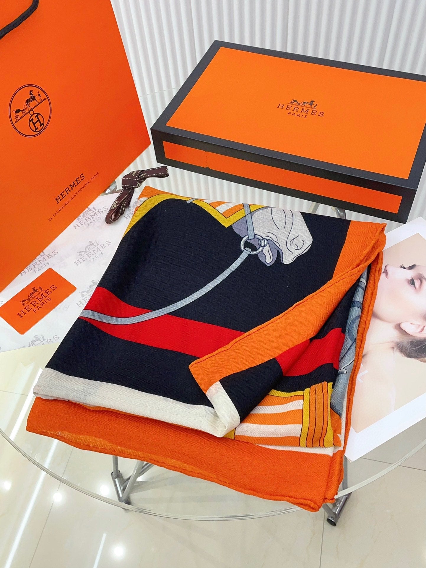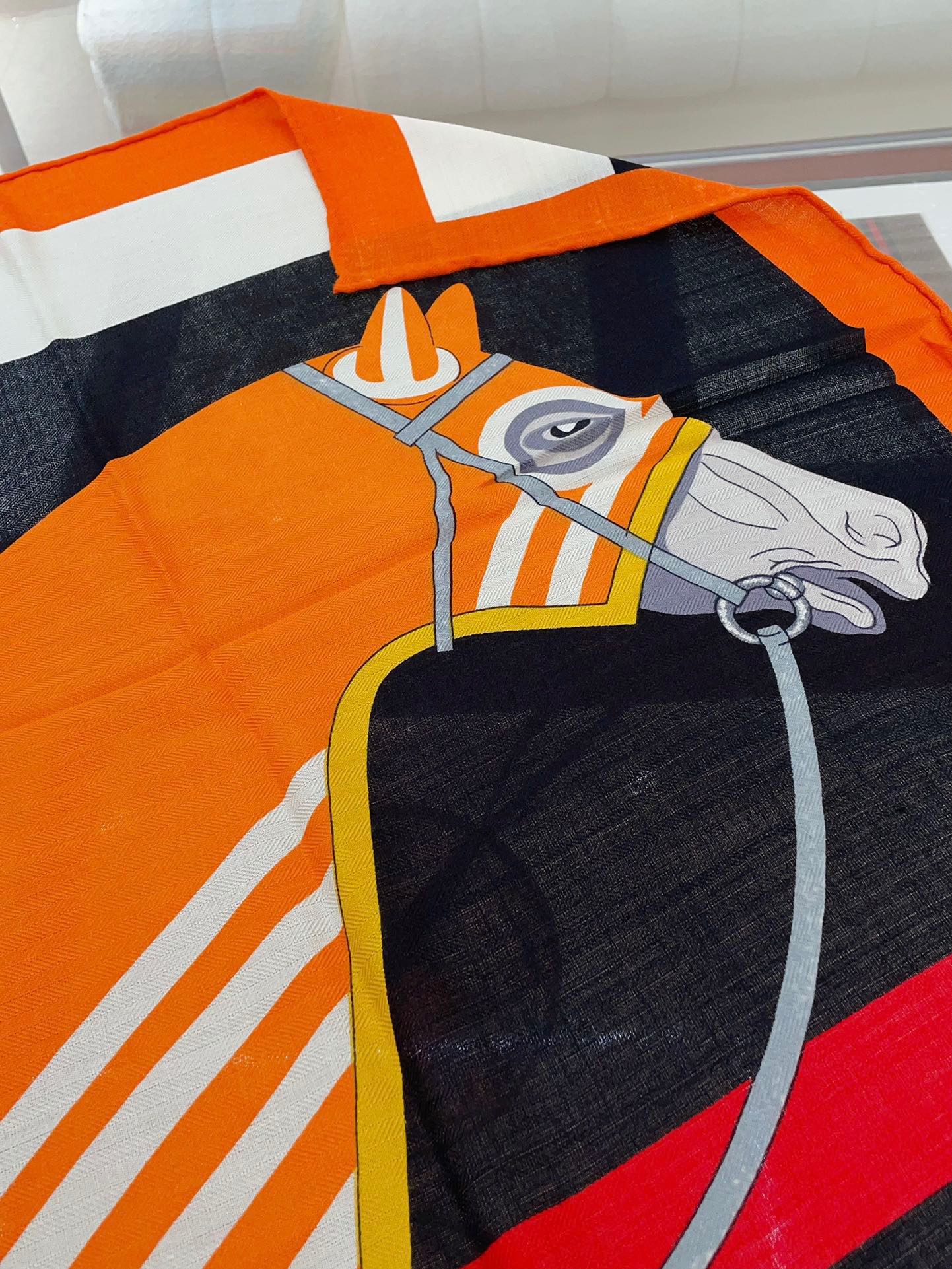 Cheval a la Couverture Scarf 140 CM In Black Colorful Cashmere And Silk 344367