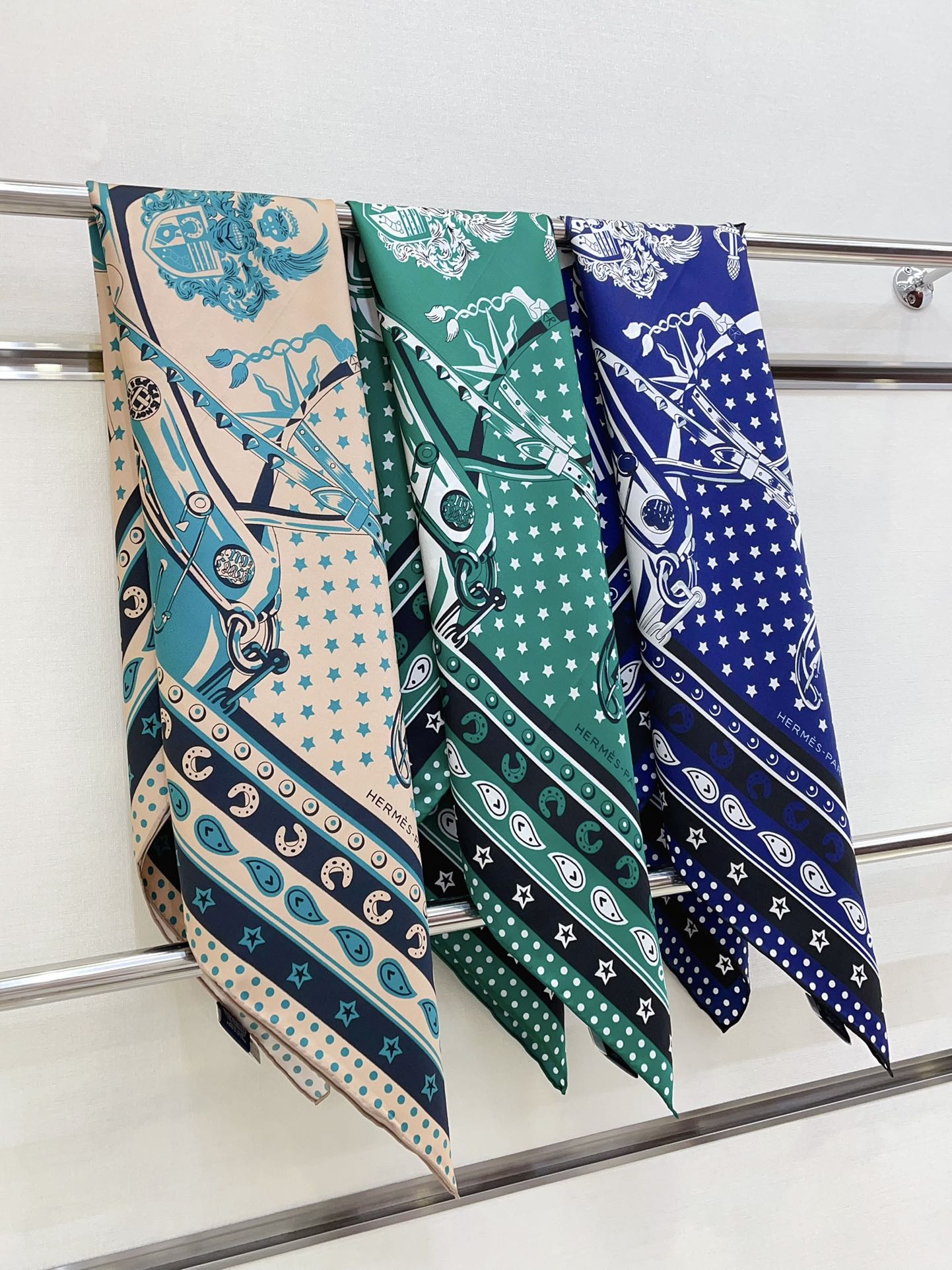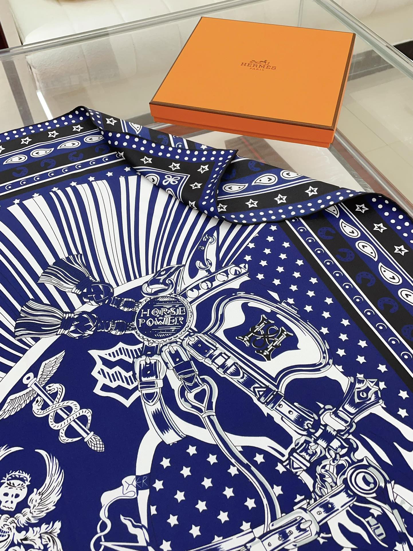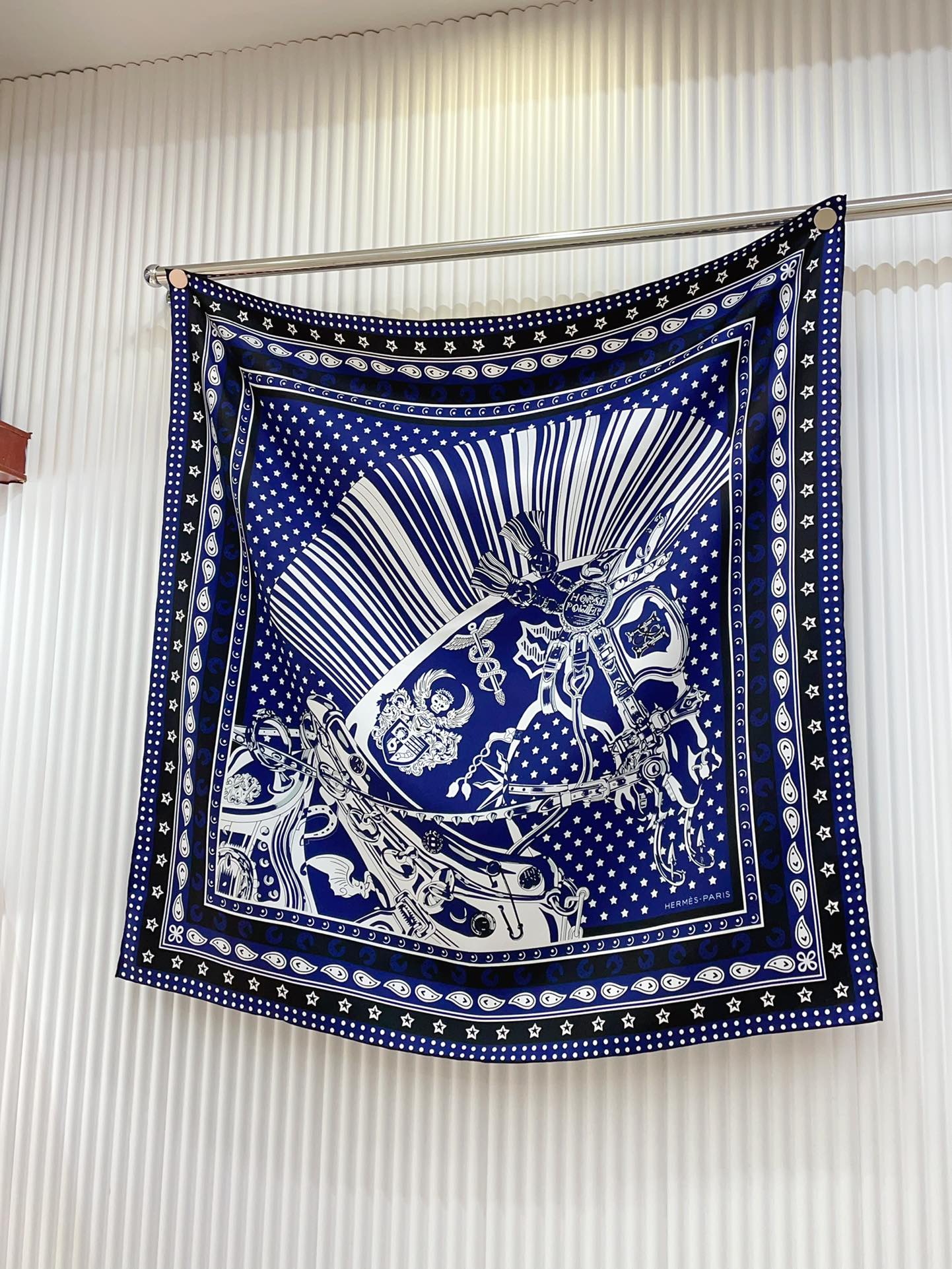 Cheval Punk Bandana Scarf 90 CM In Dark Blue Mix White Black Silk Twill 309213