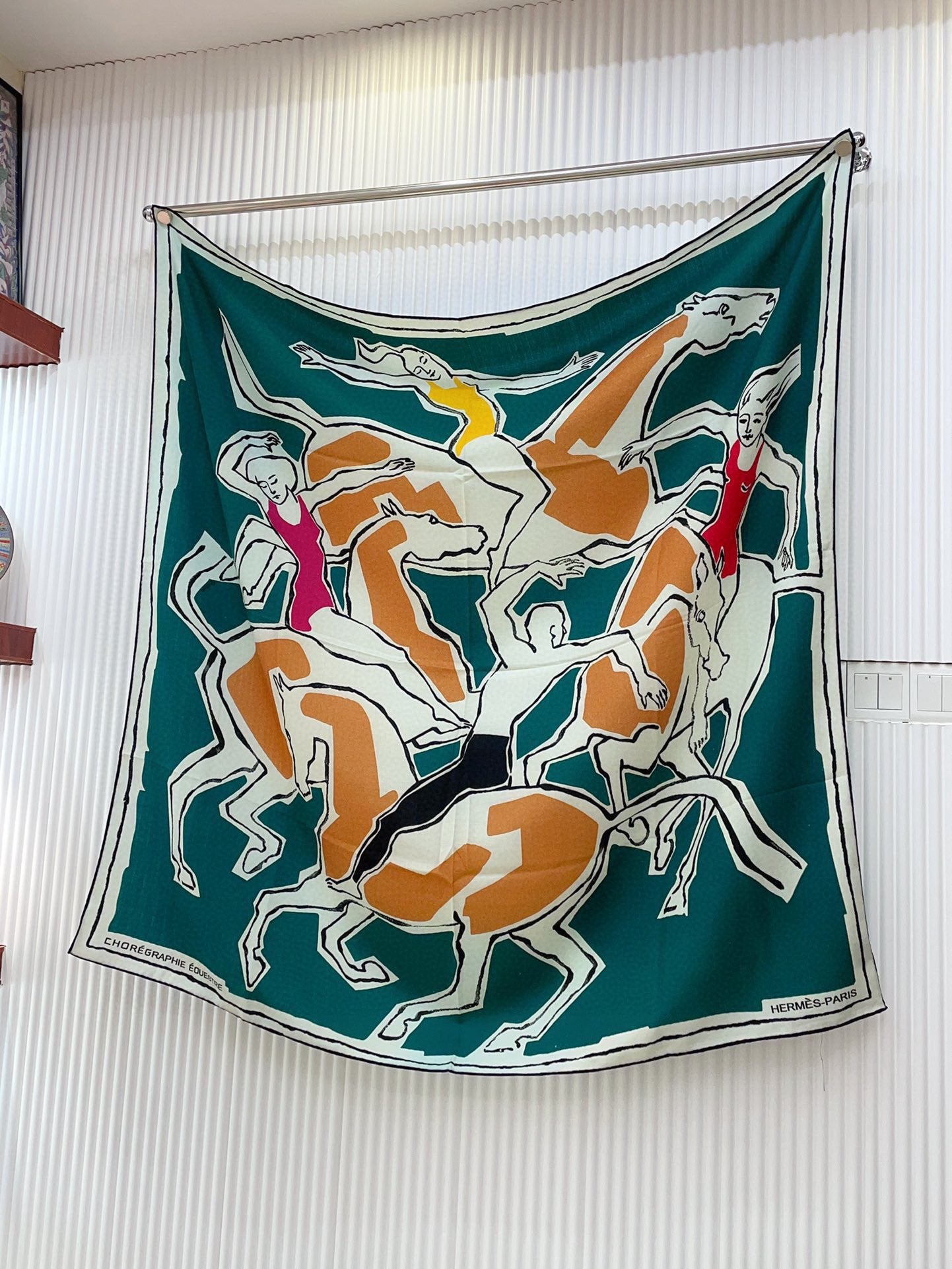 Choregraphie Equestre Pareo Scarf 140 CM Teal Blue Colorful Cashmere And Silk 393171