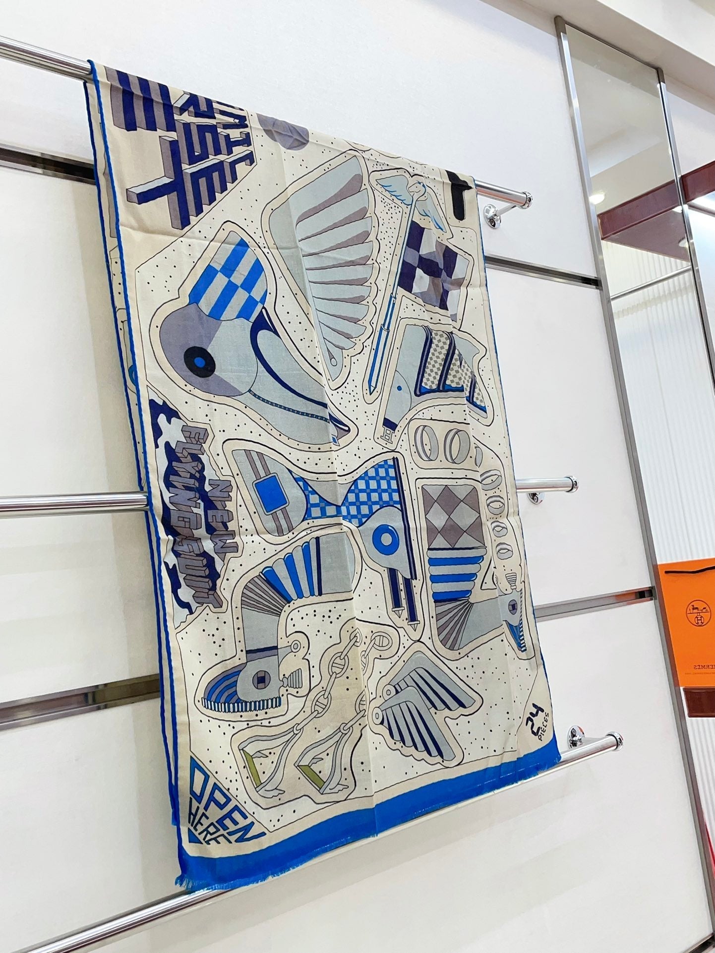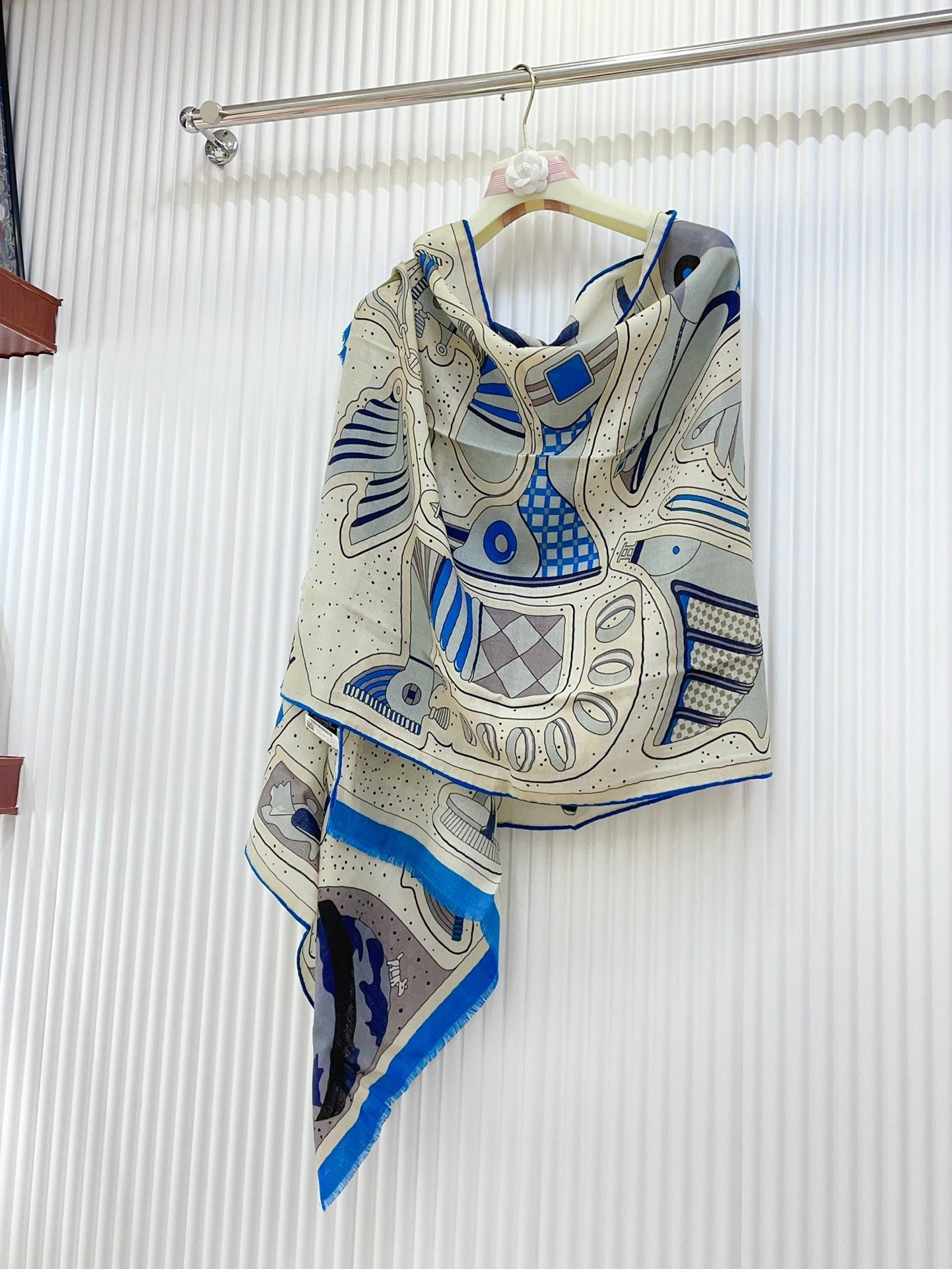 Cosmic Horse Set rectangle Scarf 180 CM In Blue Colorful Cashmere And Silk 308063
