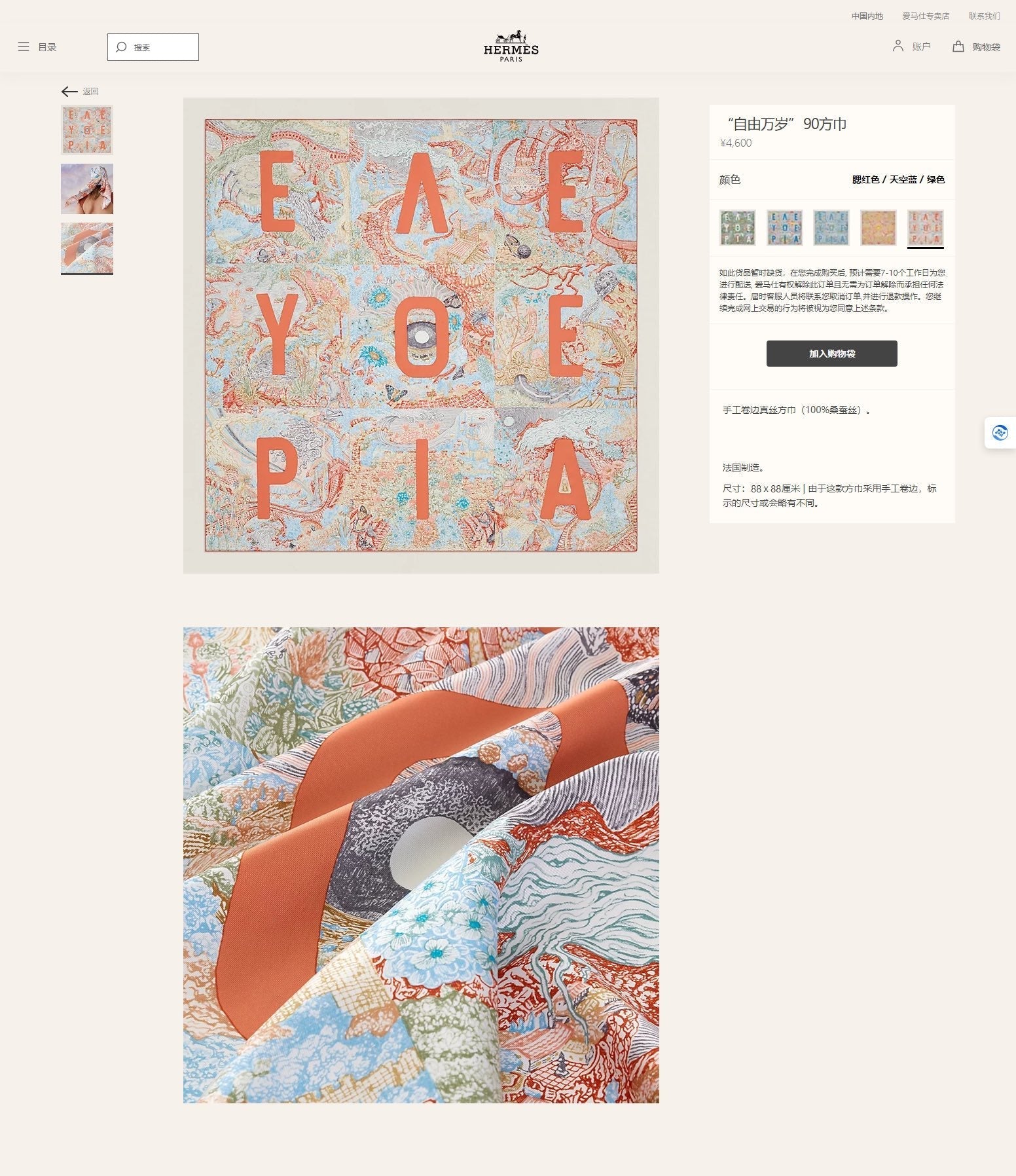Material: 100% Silk Twill