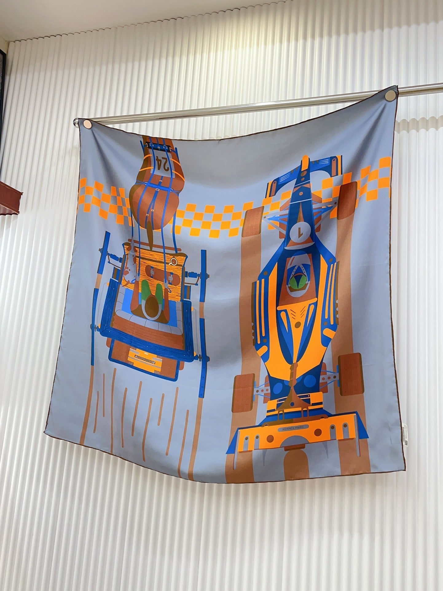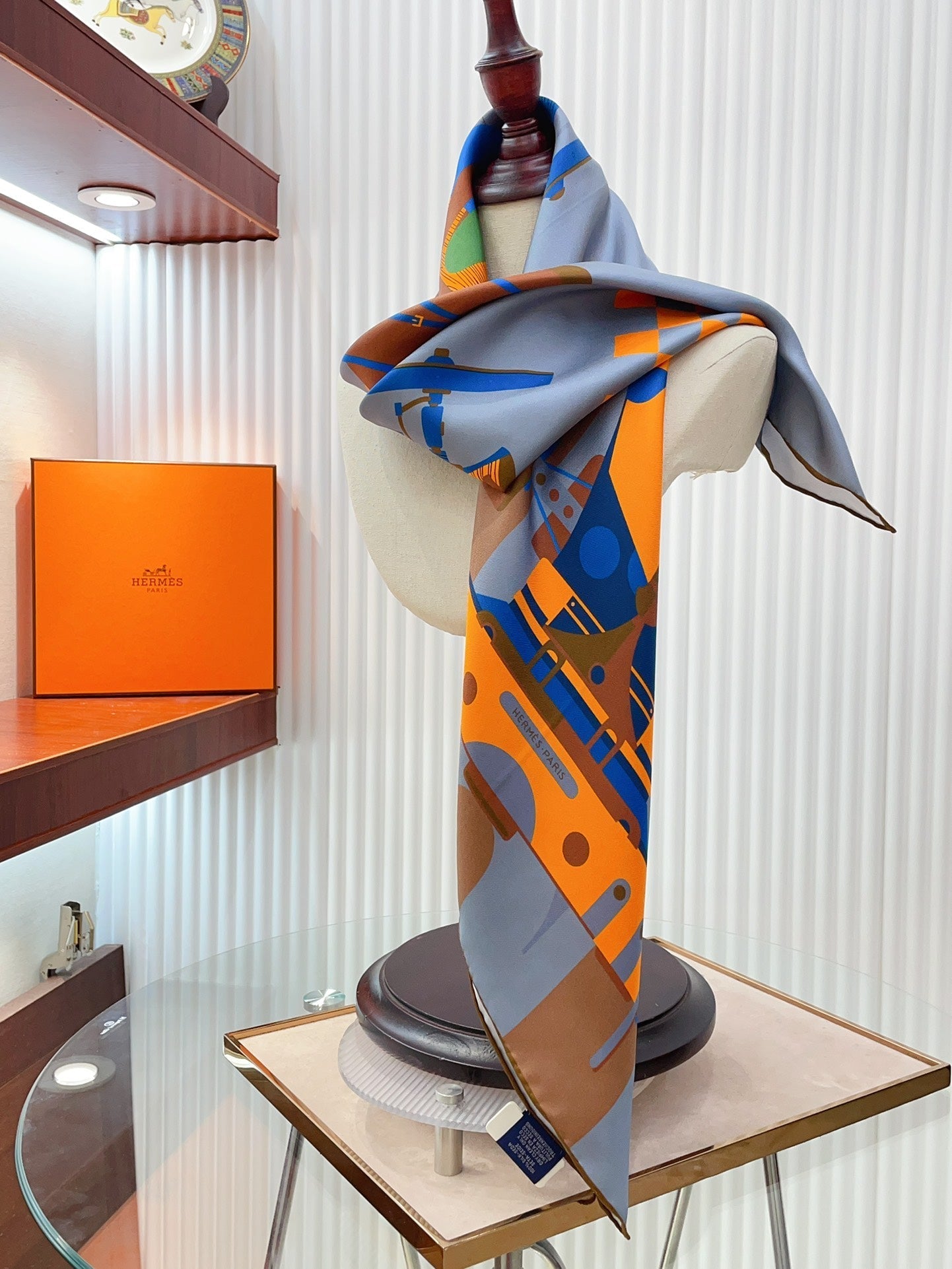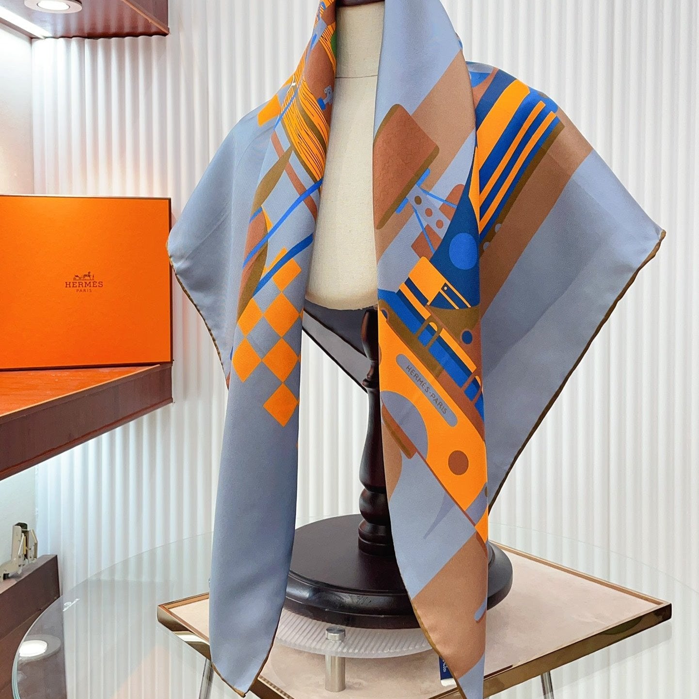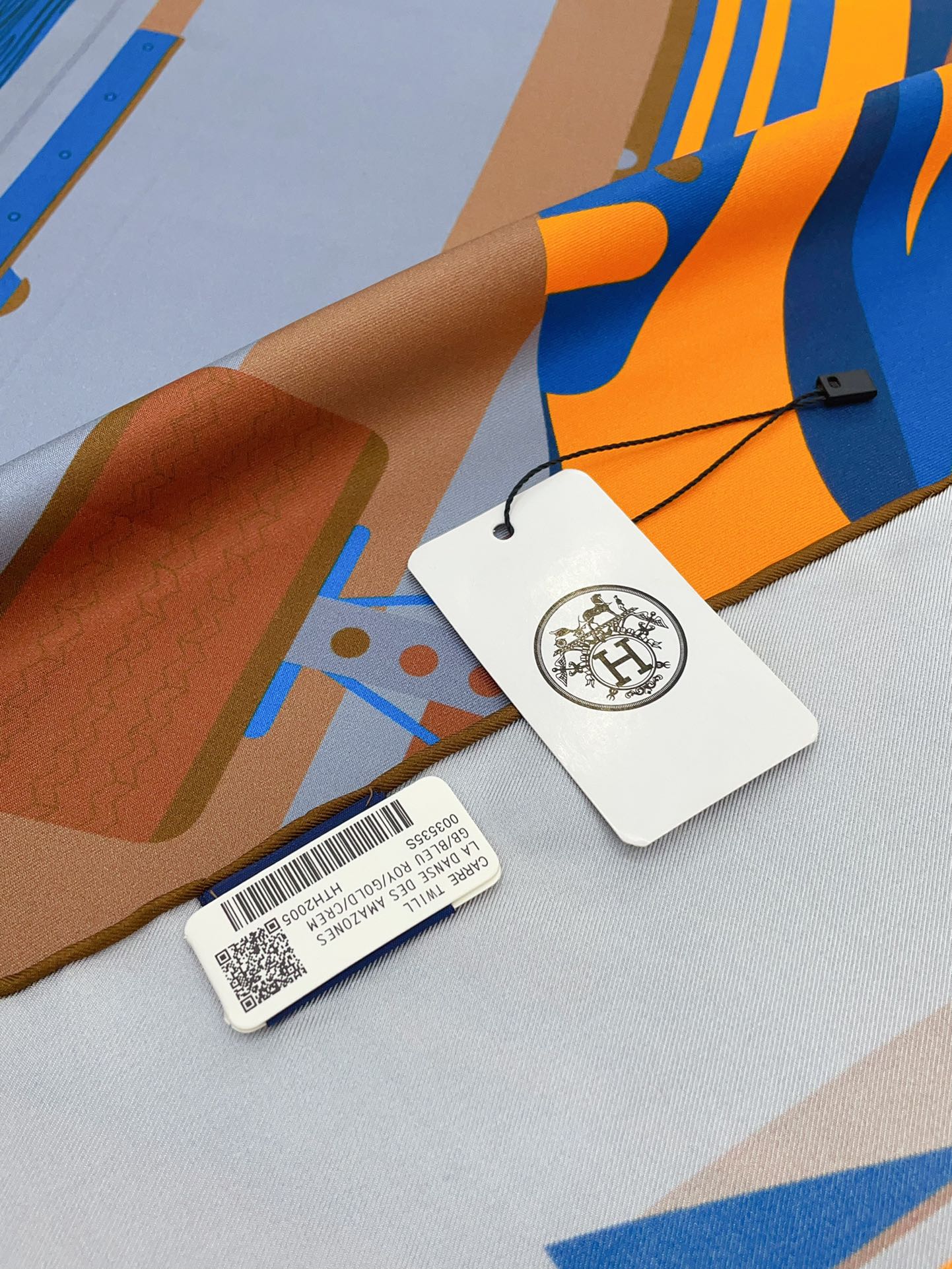 First & Chic Scarf 90 CM In Grey Blue Colorful Silk Twill 202493