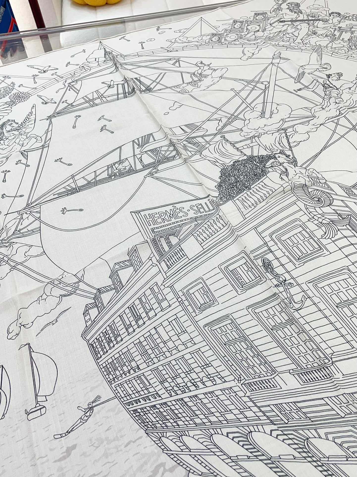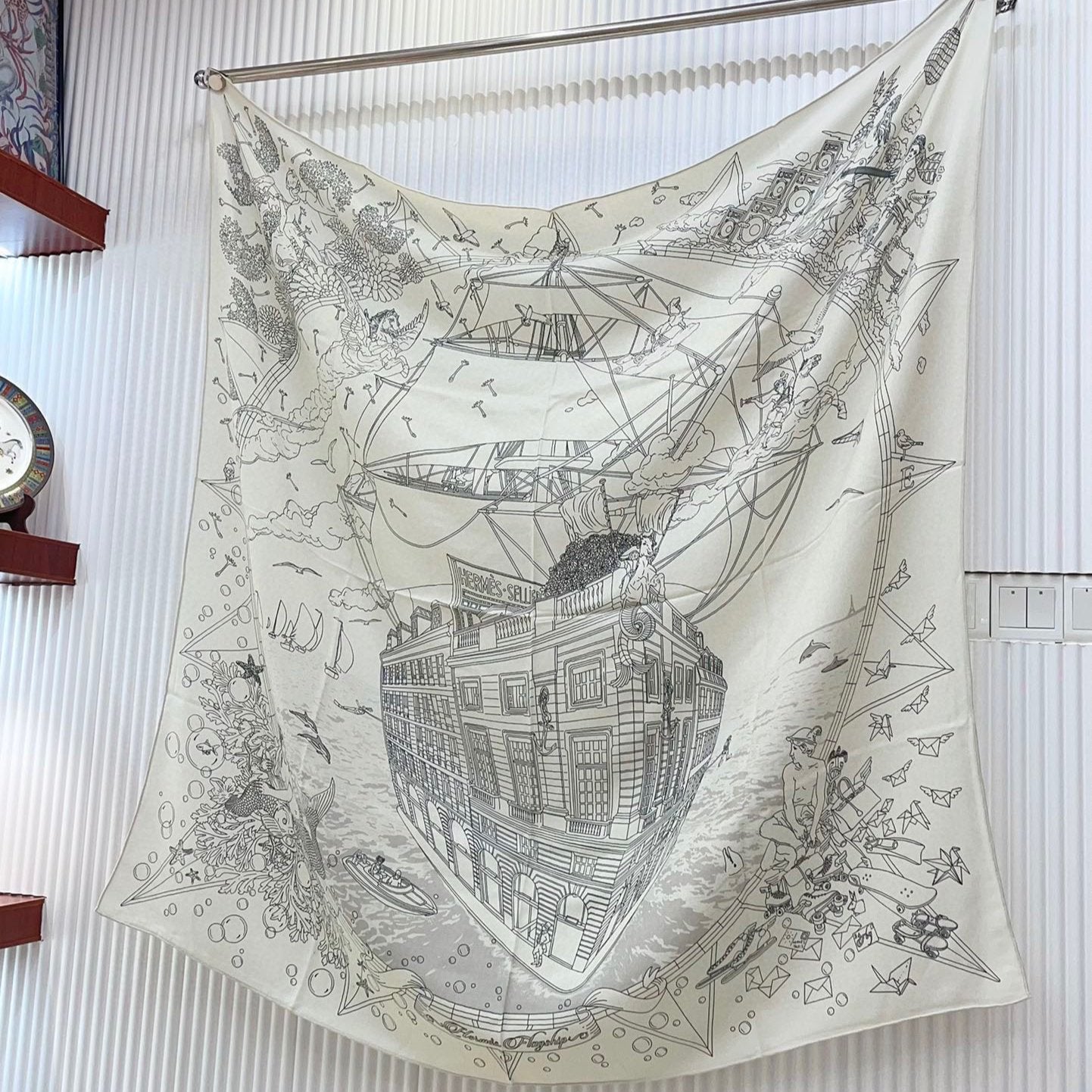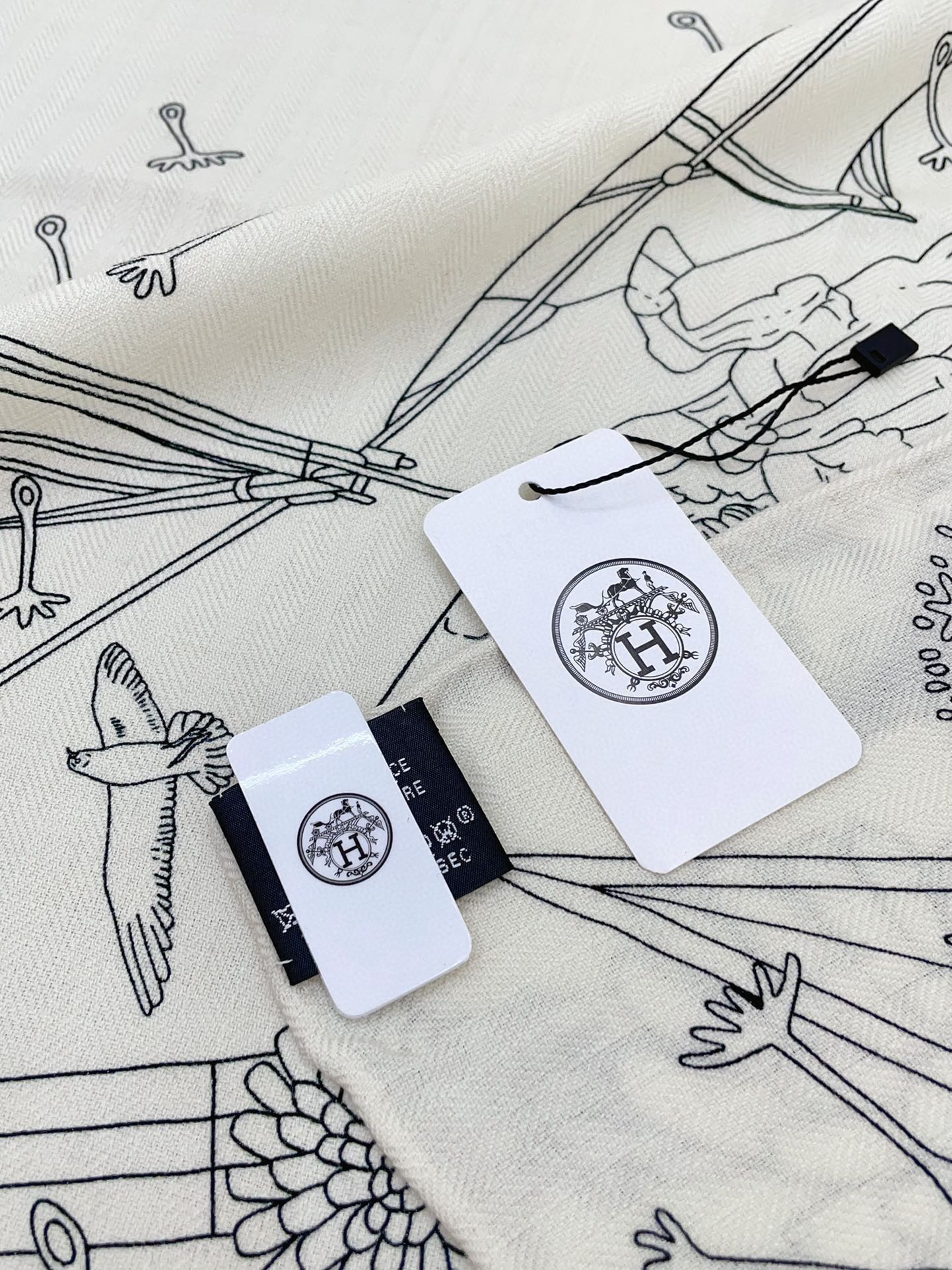 Flagship Scarf 135 CM White Grey Cashmere And Silk 402078