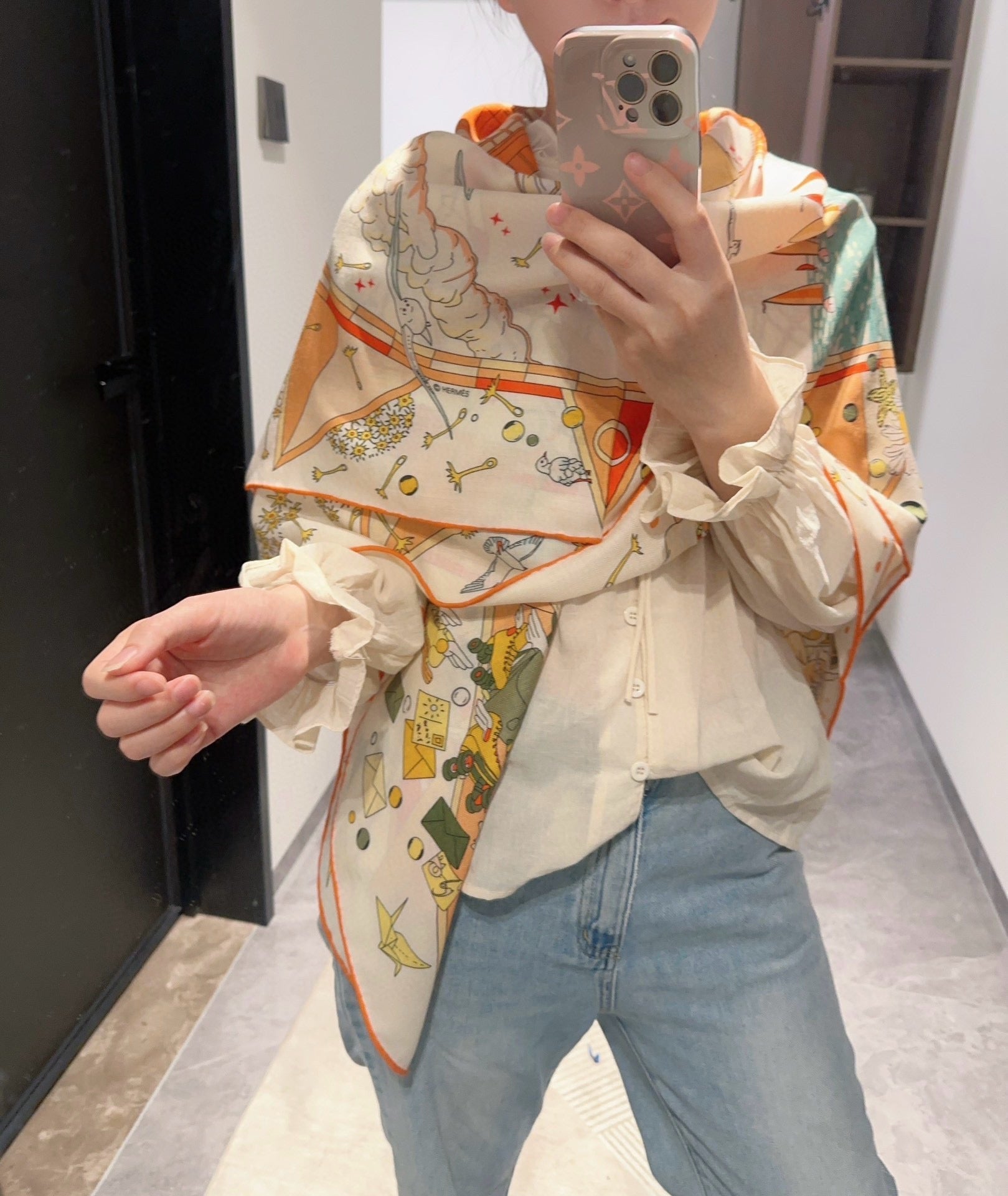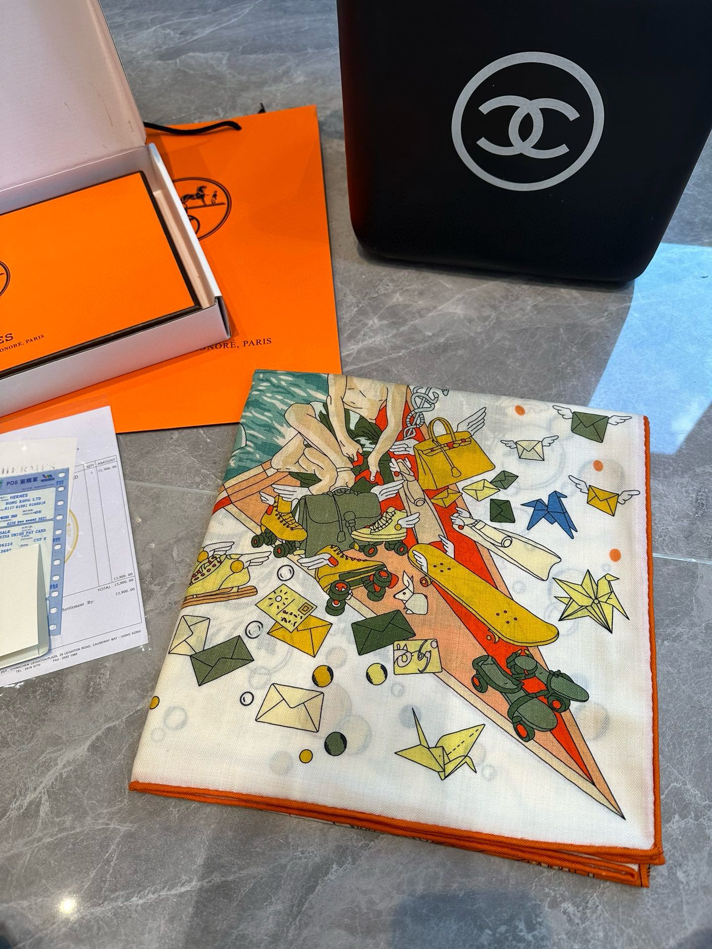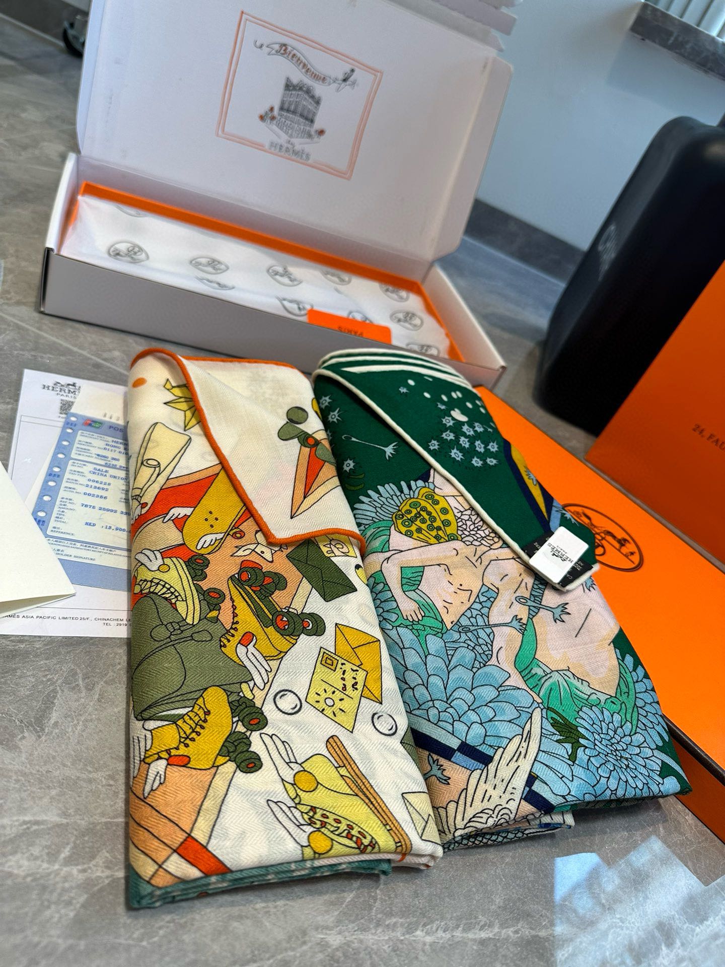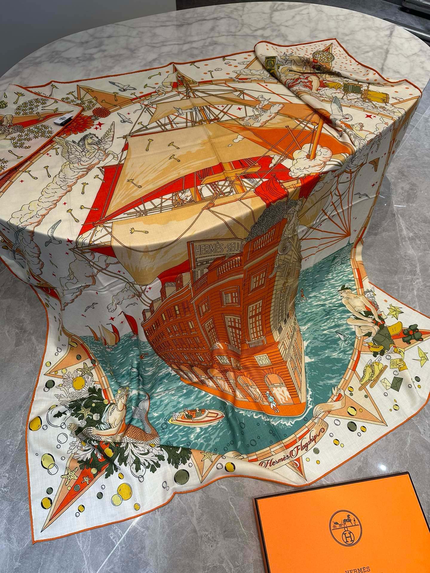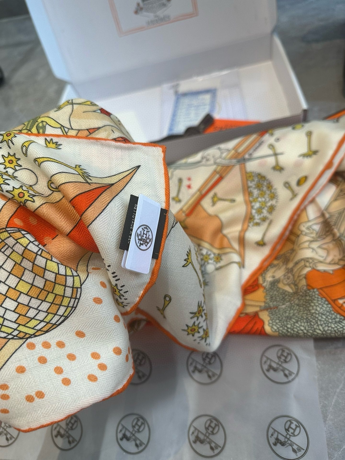 Flagship Scarf 140 CM In White Colorful Cashmere And Mulberry Silk 376505