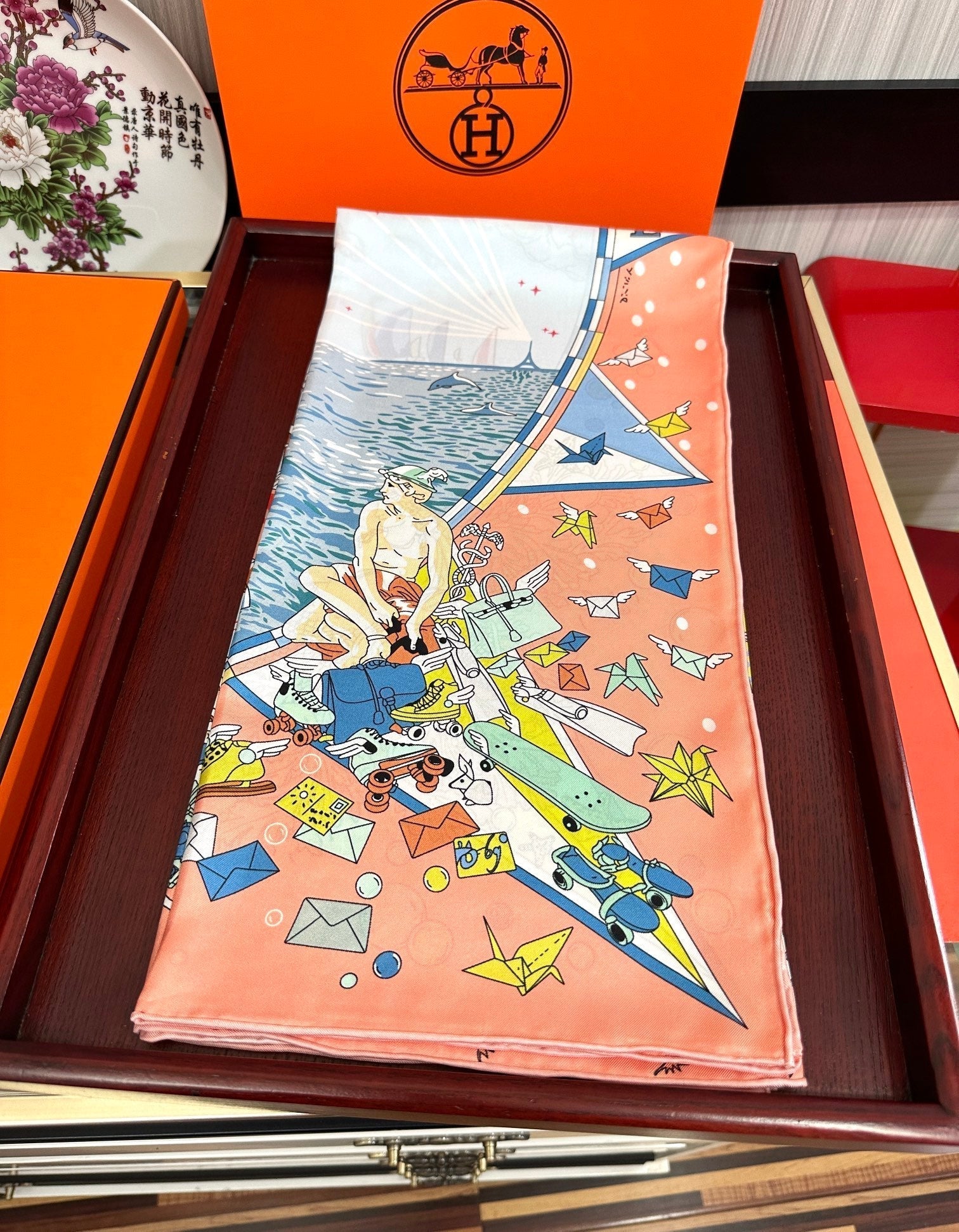 Flagship Silk Scarf 90 CM Pink Orange Colorful